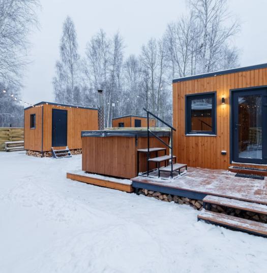 Уютные деревянные домики и бани из натурального леса расположены вдали от дорог — полная тишина и природа вокруг. Место идеально для отдыха и оздоровления без шума машин.